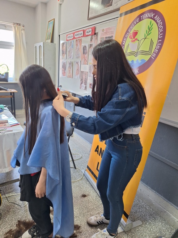 15.05.2025 Perşembe günü ilçemiz okullarından Koza Kız Mesleki ve Teknik Anadolu Lisesi'nin uygulamış olduğu sosyal sorumluluk projesi kapsamında, Güzellik ve Saç Bakım Hizmetleri Alanı usta öğreticileri ve öğrencileriyle beraber okulumuza gelerek 20 kız öğrencinin saç kesim işlemini ücretsiz olarak gerçekleştirmişlerdir. Bu güzel proje ve emekleri için Koza Kız Mesleki ve Teknik Anadolu Lisesine teşekkür ederiz.